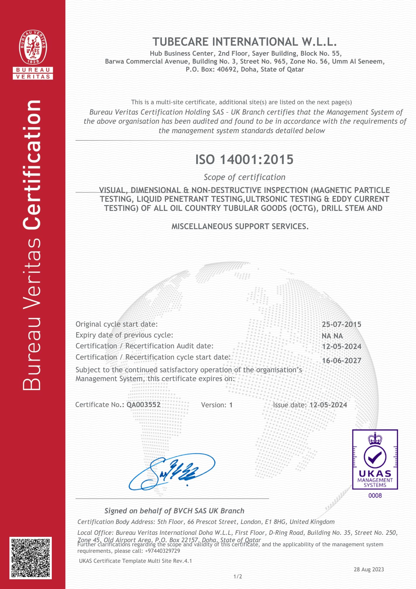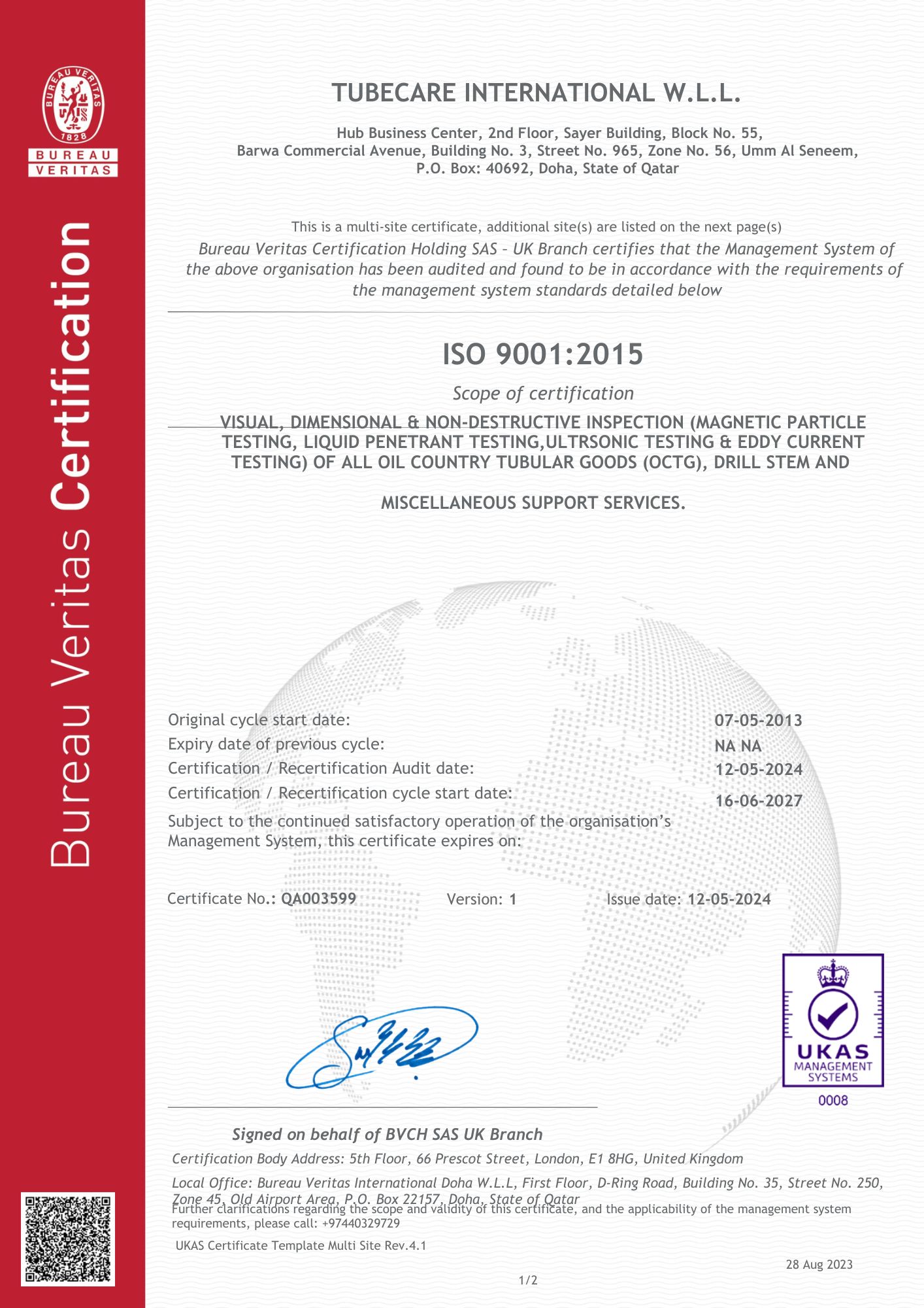 Tubecare 29k Certificate